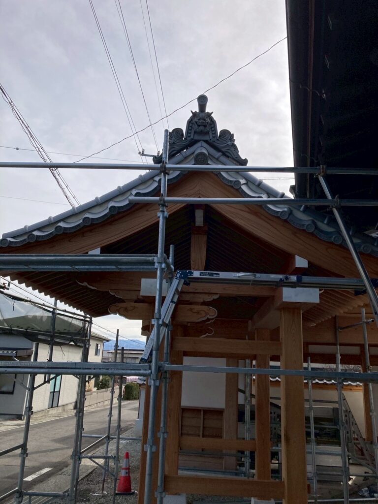 宮大工さんからのご依頼 2026 2/20 施工事例 2026年2月11日2026年2月20日 宮大工さんから依頼いただき、立派な門の屋根瓦を葺かせていただきました。 工事中の様 完成した門 宮大工さんが手掛けた素晴らしい作品の一部をお手伝いできて大変光栄です。 施工事例 よかったらシェアしてね! URLをコピーしました! URLをコピーしました! あけましておめでとうございます ワカサギ釣り@諏訪湖 この記事を書いた人 yukifukushima 関連記事 瓦から立平葺きへ 2025年12月29日 松くい虫の被害 2025年12月25日 棟瓦を交換して地震対策 2025年11月15日 セキスイかわらUの葺替え工事 2025年11月14日 照明のリフォーム 2025年9月26日 太陽光パネルの配線カバー交換 2025年9月25日 神社の屋根掃除 2025年9月21日 棟瓦の軽量化工事 2025年9月20日 コメント コメントする コメントをキャンセルコメント ※ 名前 ※ メール ※ サイト 次回のコメントで使用するためブラウザーに自分の名前、メールアドレス、サイトを保存する。