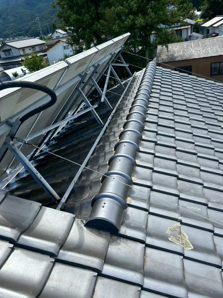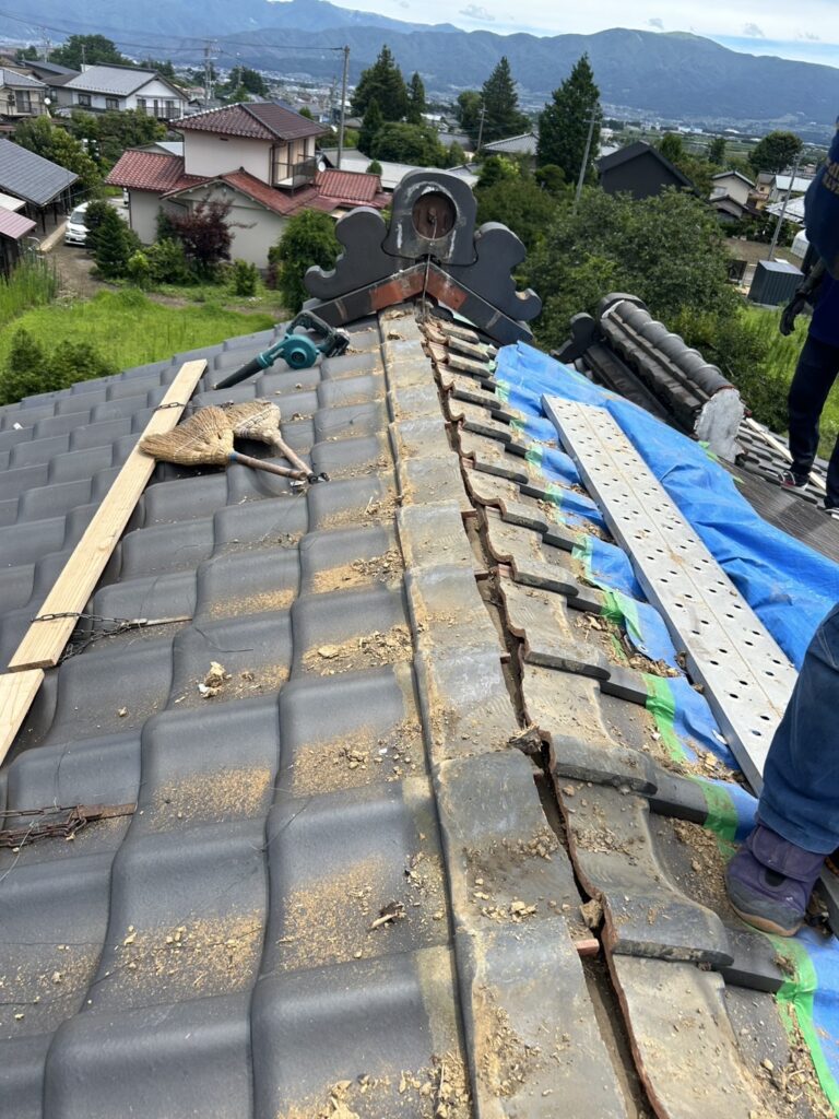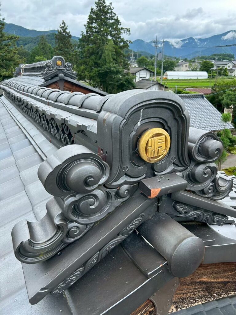 最近は屋根の軽量化のため、大きな鬼瓦を下ろして棟瓦を大きめの丸1本棟にする施工が増えてます。