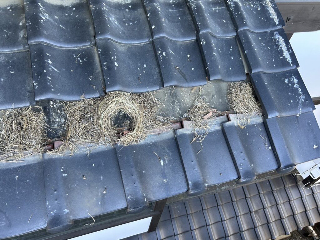 スズメの騒音で困っているとご相談いただきました。初夏はスズメの子作りのシーズンです。 また、スズメは屋根や雨樋などのわずかな隙間に巣を作る特徴があります。 ↑こちらの巣には卵が2つありました! 霜除けと出窓の瓦の隙間に作られた全ての巣を撤去...